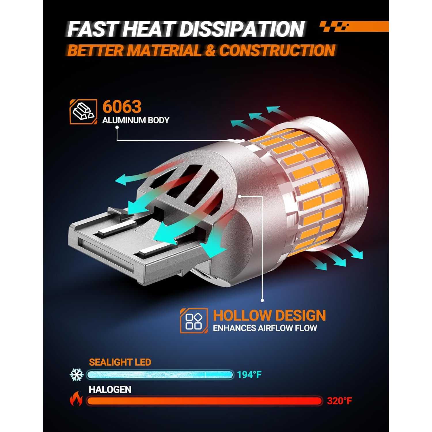 - (60,000 Hours Longevity)This 7440 7443 7444na led bulb amber made of aircraft grade aluminum and great solid connection with the socket,Its high-end appearance seamlessly matches the original car's design, and with a lifespan of up to 60,000 hours