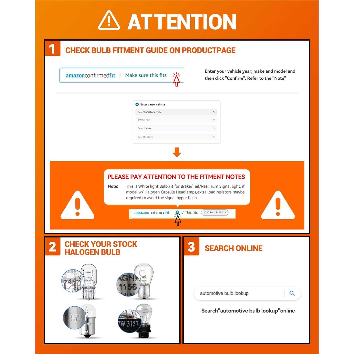 - (Note)7443 LED turn signal lights are designed for broad vehicle compatibility, but Some specific models may experience hyper-flashing (rapid blinking) due to LED bulb compatibility. For stable, hyper-flash-free performance, we recommend a load equalizer or resistor. we provide a complementary decoder with every purchase. This ensures your turn signals function flawlessly without unnecessary distractions.We will include an extra decoder in each package and provide an installation video on the details page for customer reference!