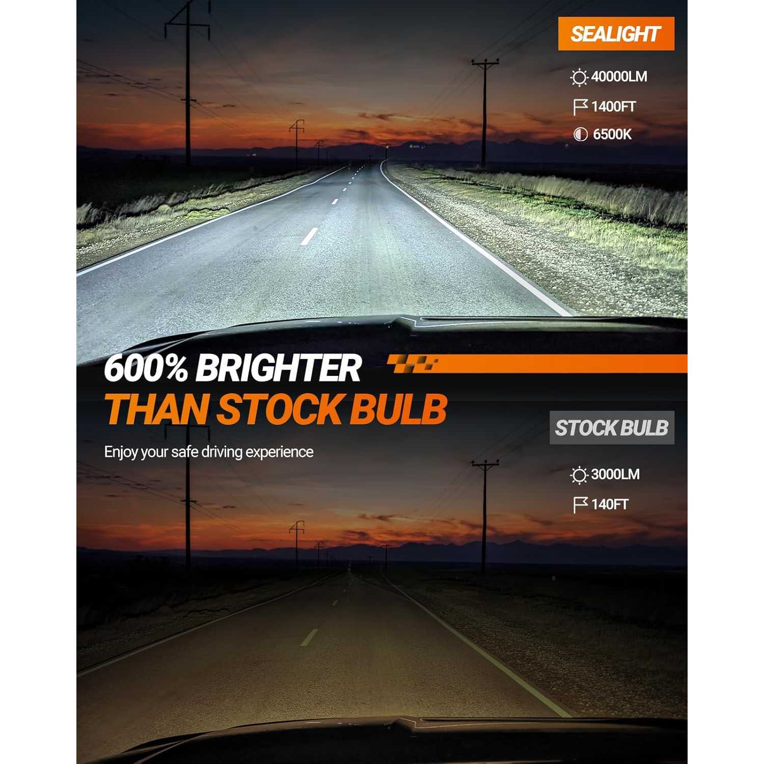- 800% Super Brightness: SEALIGHT H13 bulb Boasting upgraded 16PCS CSP chips, h10 led fog lights with 5.0 upgrade chips, emit up to 4,0000LM brightness with a cool white 6500k. Providing superior visibility, enhancing your safety during nighttime driving, Interior Lighting