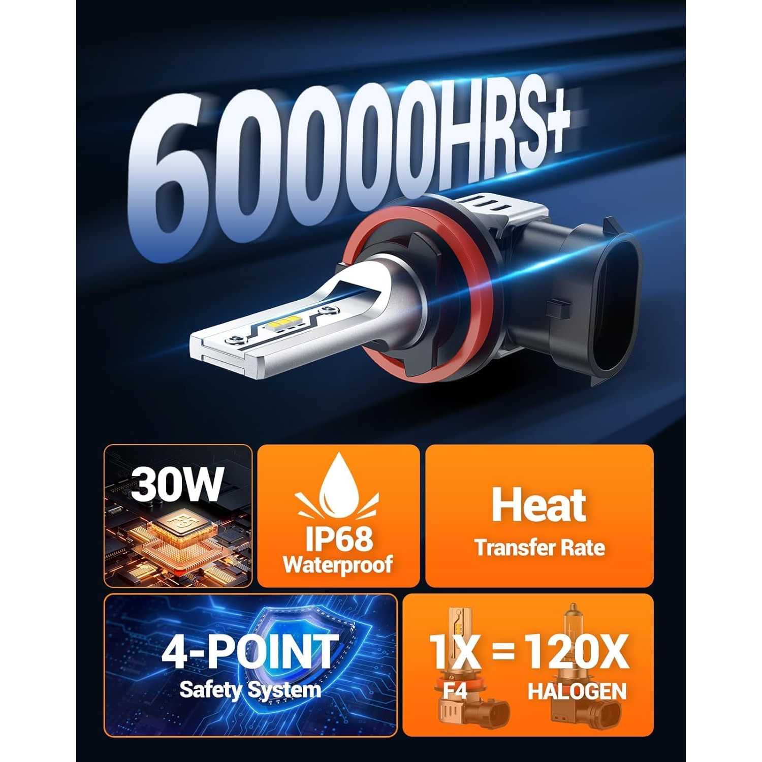 - 60000+ Hours Lifespan: Equipped with a 13000RPM high-speed cooling fan, SEALIGHT H13 9008 bulbs offer exceptional heat dissipation, providing over 60000 hours of reliable illumination and smooth operation. In addition, IP68 waterproof technology can make it use in a variety of weather
