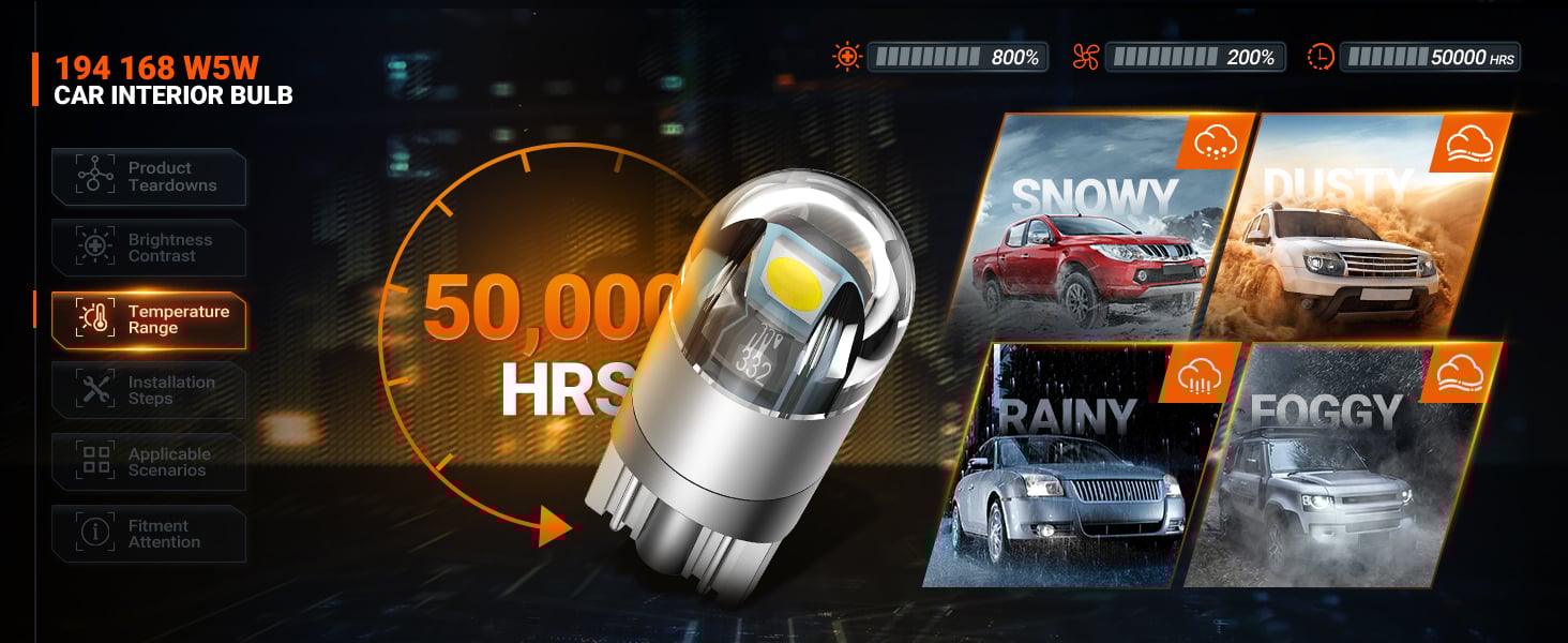 | Lumens | T10/194 600LM/set+41mm/578 600LM/set |