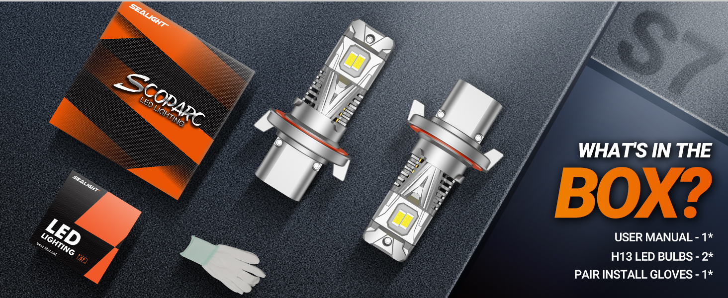 - SEALIGHT S7 adopt double-sided 7535 CSP LED chips and 22,000 LM/Set, 600% brighter than halogen headlights.