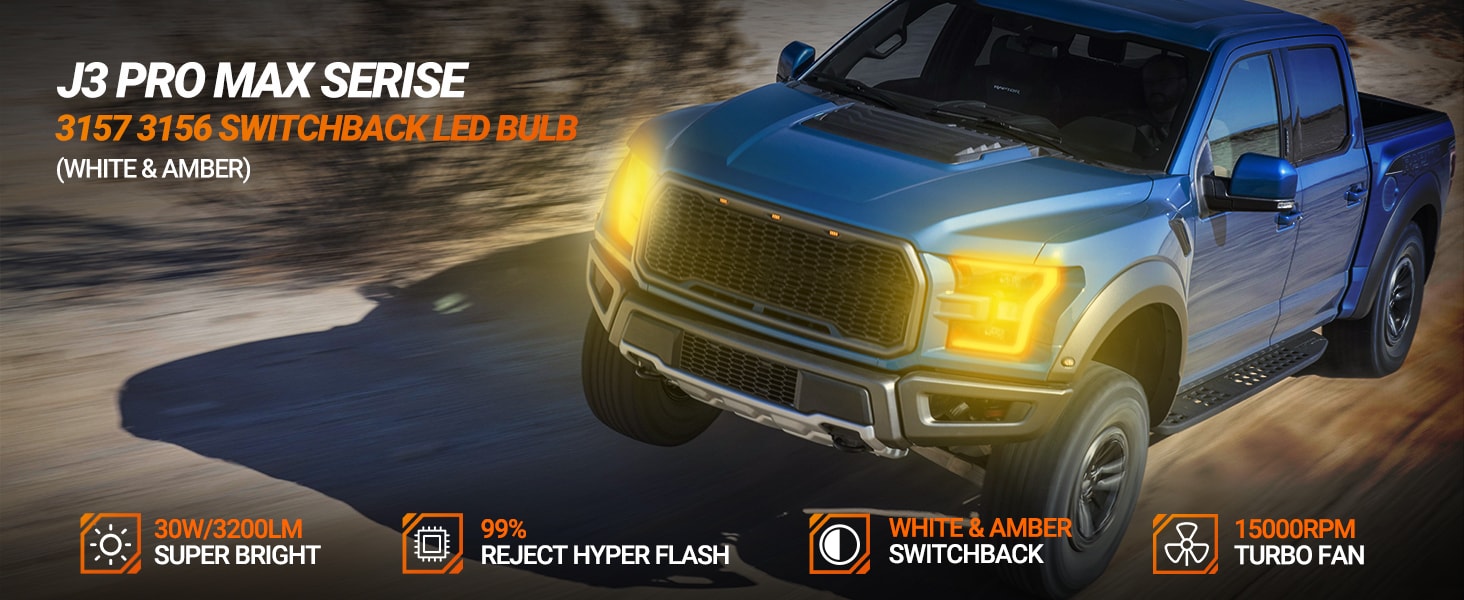 SEALIGHT® SLJ3 3157/3156/3057 LED Turn Signal Lights and DRL Bulbs 30W 3200LM Amber/White Switchback 2PCS