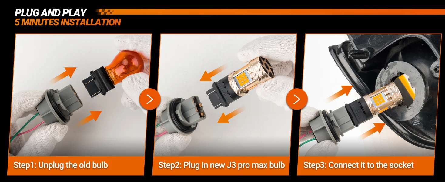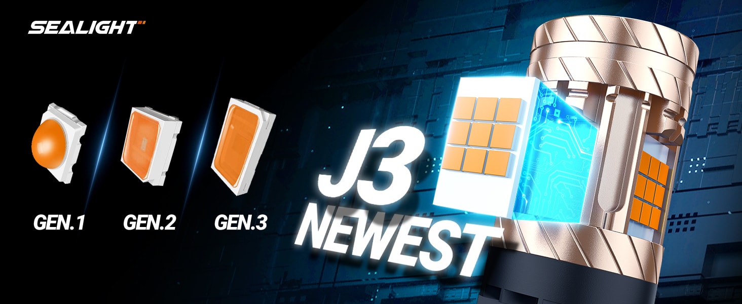 SEALIGHT® SLJ3 3157/3156/3057/T25 LED Brake Tail Light Turn Signal Light Bulbs 30W 3200LM 2700K Amber Yellow 2PCS