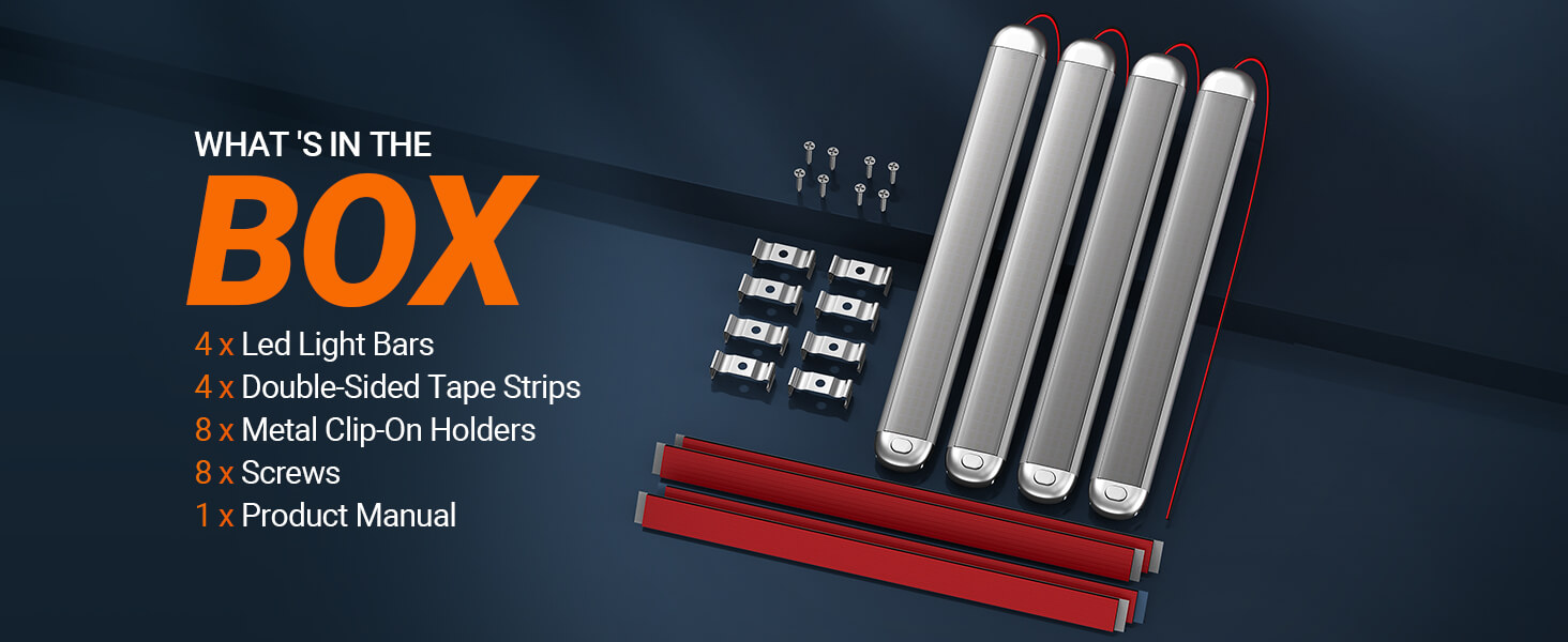 - (Wide Application)The slim and fexible design ensures this 12V led lights installed easily and suitable for various vehicles like cars, trailers, trucks, RV Van, boats, Lorry, Caravan, Motorhome,etc. 12V voltage enables this light bar to easily fit in any vehicle, automobile, home, office, cabinet, and commercial spaces and its wide lighting range provides abundant lighting for reading, working and video conference.