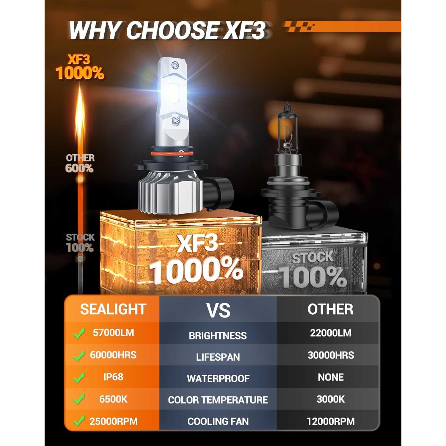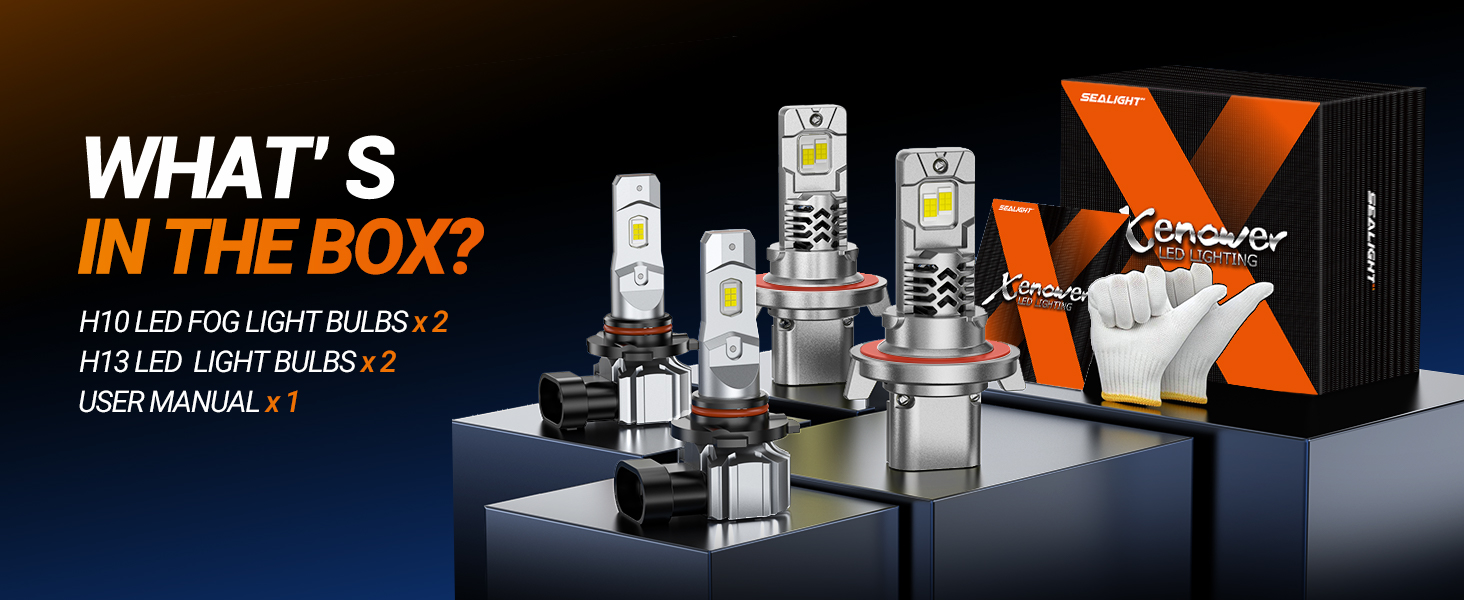SEALIGHT® XF3 H13/9008 LED Headlight H10/9140/9145 Fog Light Bulbs Combo 2Pairs