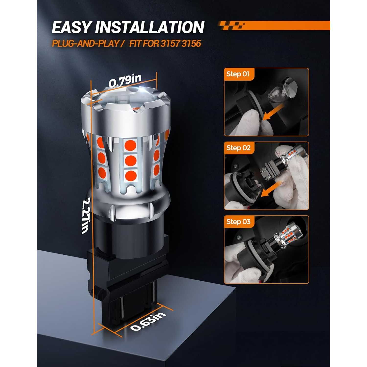 - (OEM Bulbs Socket)Sealight 3157 LED Bulb were non-polarity design. This brake light bulb no need for modification or flip, just Plug and Play. Tail light bulb applied to US standard sockets. Fits for 3156 3056 3356 3456 4156 3047 3157 3157A 3057 3155 3157NA 4157 led tail light bulbs. Easy to install even if without installation experience.